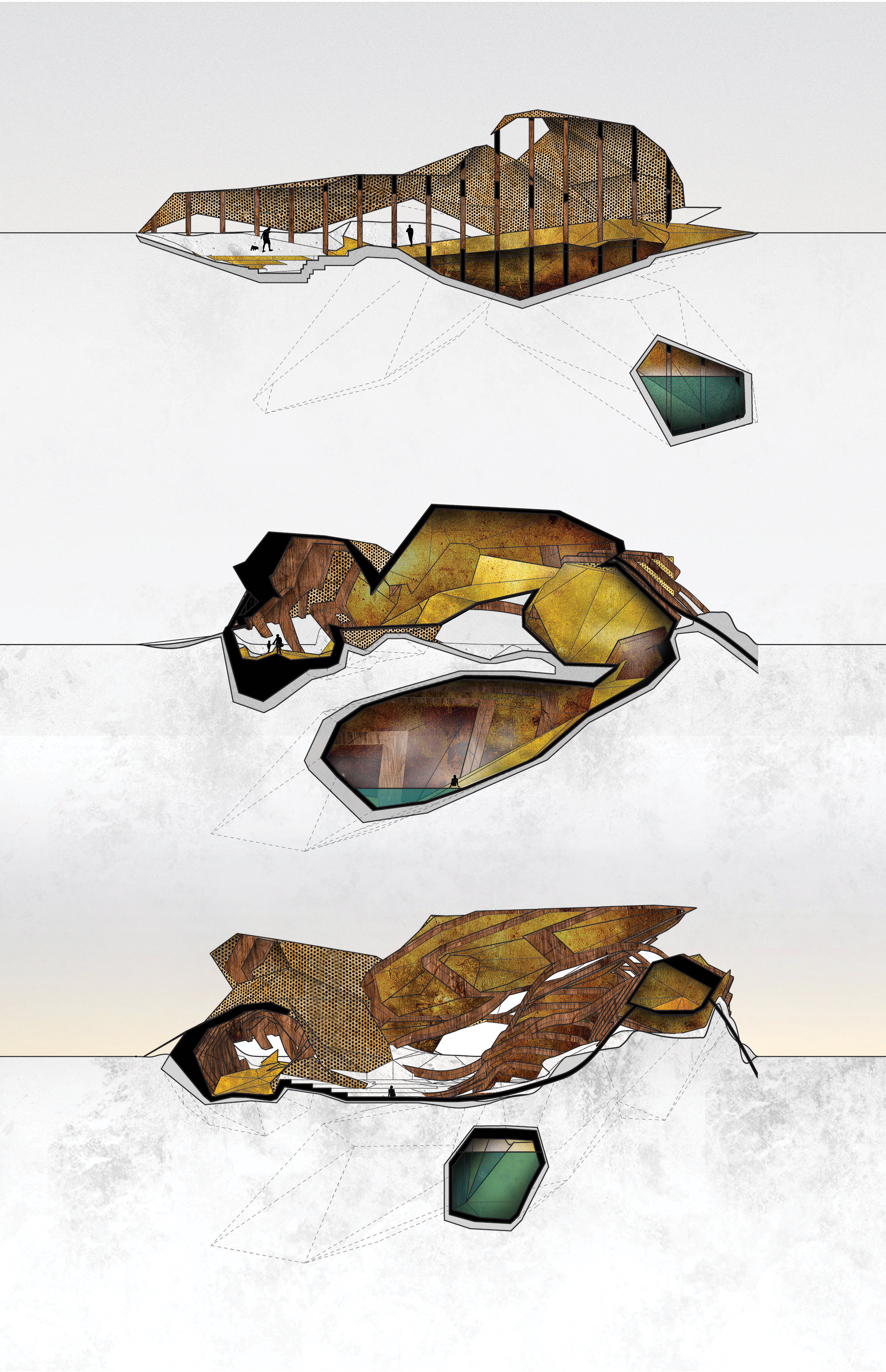 This first design project evokes a cenote – a natural sinkhole exposing bathing water below - offering escape from its Manhattan surroundings by elongating a journey into its depths below the park above.
