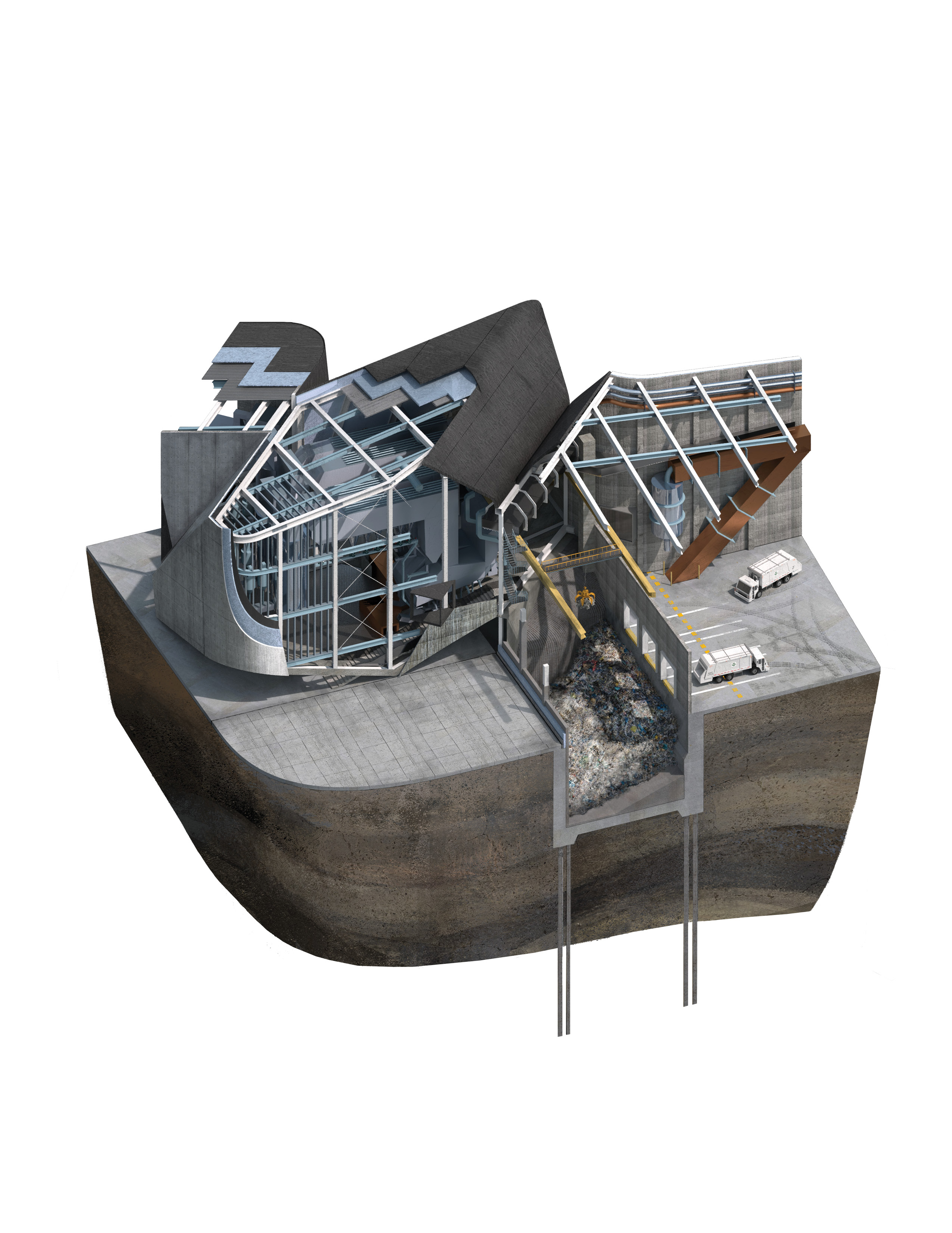 Energy from waste plant + free-diving training facility. Pratt GAUD Studio 04 with